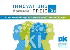 Bonn, Februar 2025 - Der Preis des Deutschen Instituts für Erwachsenenbildung (DIE) würdigt Innovationen, mit denen die Erwachsenenbildung auf die veränderten technologischen und gesellschaftlichen Rahmenbedingungen und neue Bildungsbedürfnisse eingeht. Das DIE unterstützt die öffentliche Anerkennung dieser Leistung und macht sichtbar, wo sie besonders eindrucksvoll gelingt. Das Thema des diesjährigen Innovationspreises lautet: "KI und Weiterbildung – Barrieren abbauen, Teilhabe gestalten".