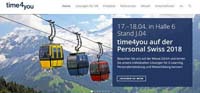 Karlsruhe/Zürich, April 2018 - Am 17. und 18. April treffen sich Experten und Personalentscheider zum Austausch auf der Personal Swiss in Zürich, dem Jahresereignis des Schweizer Human Resource Managements. In Halle 6, am Stand J.04 präsentiert die time4you als Experte für Personal-, Informations- und Trainingsmanagement die neuen Funktionalitäten der IBT® SERVER-Software und mehrfach preisgekrönte Lern-, Contenterstellungs- und Analysetools.