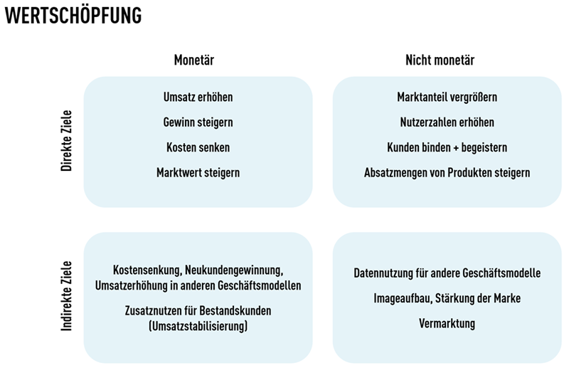 Die nicht monetären Ziele sind etwas schwerer zu greifen. Ein Beispiel: Nehmen wir die Akademie eines Herstellers von Maschinen. In der Akademie schult er seine Handelspartner und Kunden darin, seine Produkte effizienter einzusetzen. Dadurch erhöht er die Kundenbindung. Besser geschulte Handelspartner sind dadurch auch erfolgreicher im Verkauf der Maschinen. Die Wertschöpfung der Akademie ist hier nicht monetär, die Wirkung für den Hersteller im Umsatz allerdings schon.