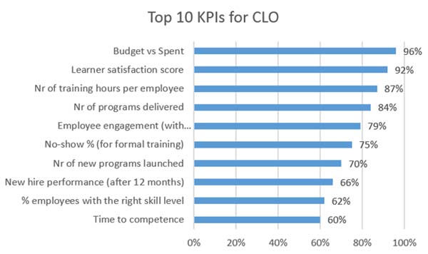 Darüber hinaus verfügen CLOs nur über eingeschränkte Erfahrung mit dem Sammeln und Analysieren von Daten während und nach den Learning-Maßnahmen. In letzter Zeit wird das Fehlen eines strukturierten Berichtswesens und einer professionellen Kommunikation als Ursache für die Schwierigkeiten angegeben, die Wertschöpfung von L&D nachzuweisen. Es gibt unter den CLOs eine allgemeine Bewegung hin zur Erforschung neuer Wege, um die Business Leader mit zuverlässigen Metriken vom L&D-Wettbewerbsvorteil zu überzeugen.